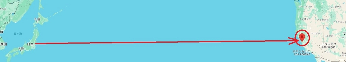 飛行機でだいたい東京からサンノゼは8,285kmくらいの距離。